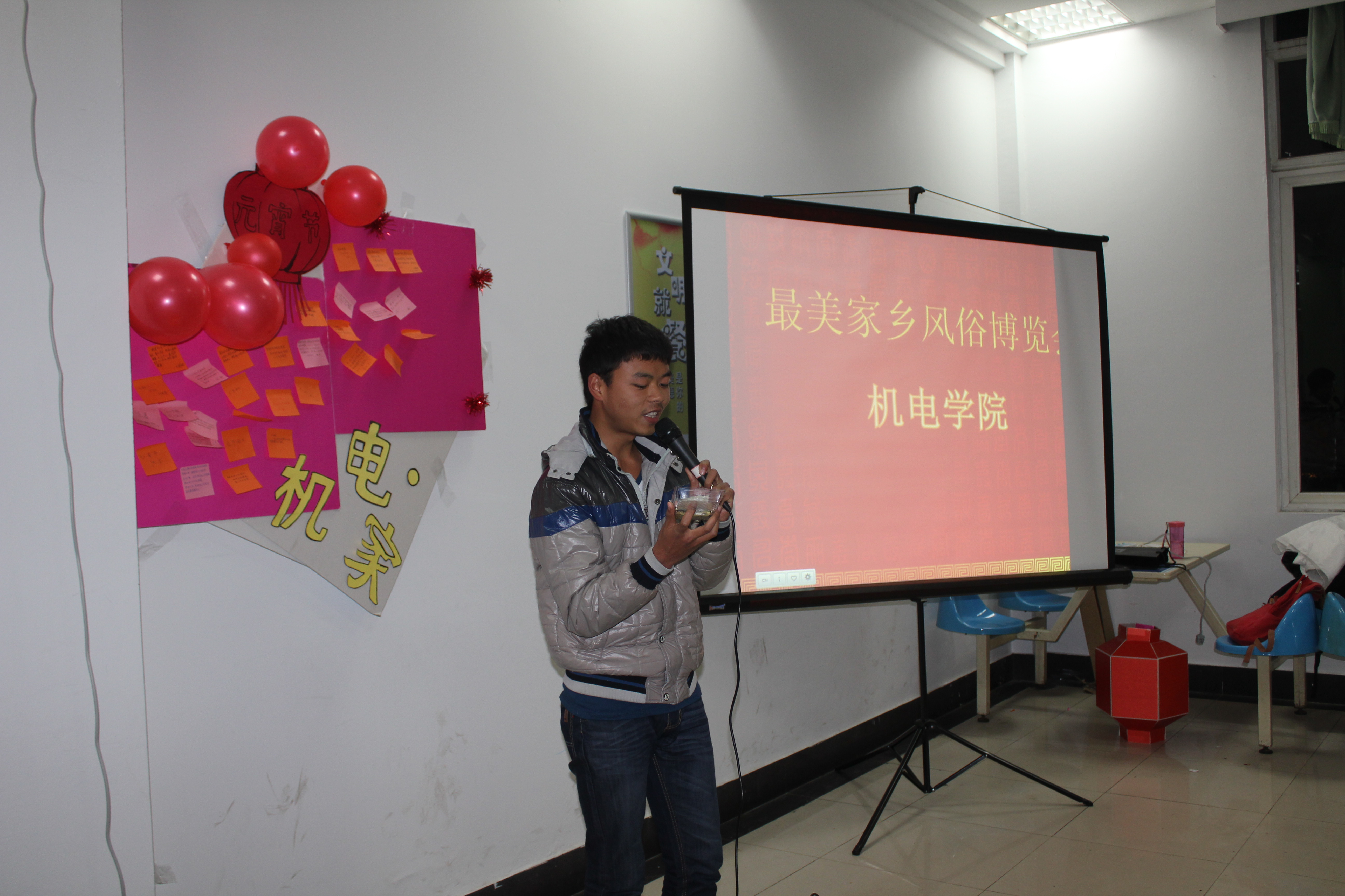 本次活动的主题是“机电・家”,意即通过丰富的师生互动,营造机电一家的氛围,增强同学的归属感、凝聚力。活动的第一个环节是“乡韵机电・最美家乡情”,琳琅满目、各具特色的家乡特产展现了各地的文化特质与民俗风情,同学们穿梭于特产展览会,品尝着家乡特产,领略着不同文化的魅力。14级的郑之发、王嘉琦、王力同学更是现场展示了他们家乡的春节习俗,让在场同学更多了解了别具一格的家乡美。