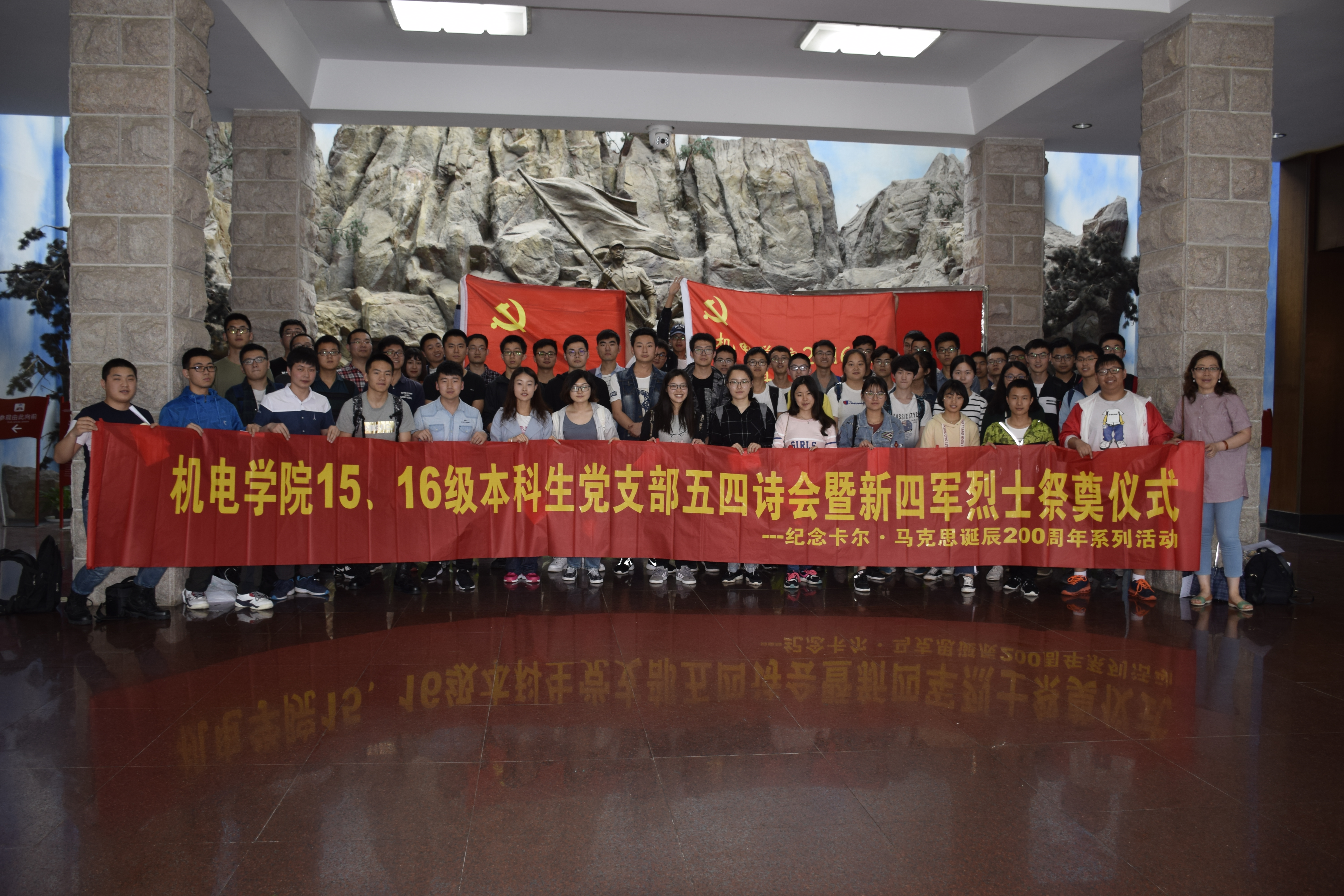 开展茅山新四军纪念馆党日主题教育活动――15、16级本科生党支部五四诗会暨新四军烈士祭奠仪式。2015级本科生党支部的19名预备党员,8名正式党员,2016级本科生党支部部分党员、积极分子代表和色情动漫
