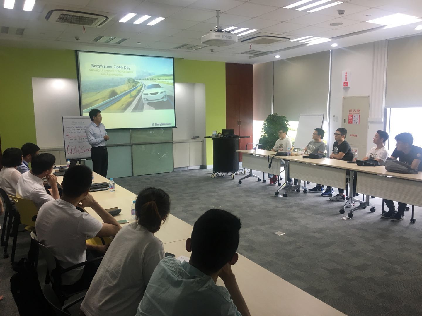 师生一行抵达博格华纳工厂后,工厂厂长张让利首先对大家的到来表示热烈欢迎,希望借此契机加强校企互动,形成更紧密的合作关系。高级人事行政经理陆冰就博格华纳太仓工厂的情况做了简单的介绍,目前太仓工厂共有29000员工,以创造一个洁净、高效的世界为目标打造企业品牌形象,企业热忱寻求校企合作,致力于社会公益,拥有较好的社会认可度。