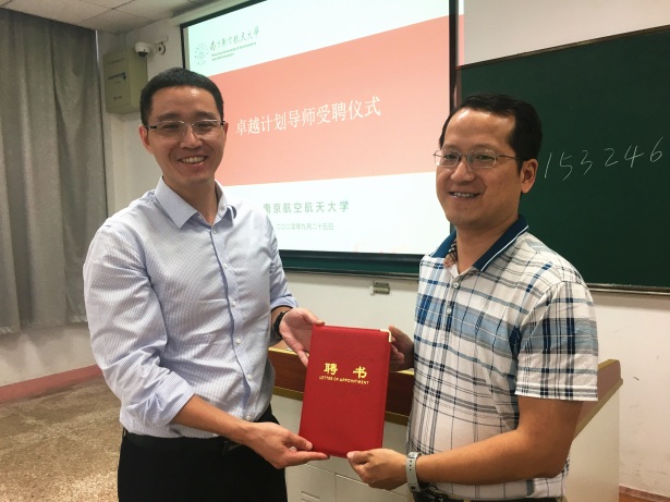典礼最后,徐书记为“卓越班”导师李军颁授聘书,辅导员张恒和代澔丛为两个“卓越班”授予班旗。