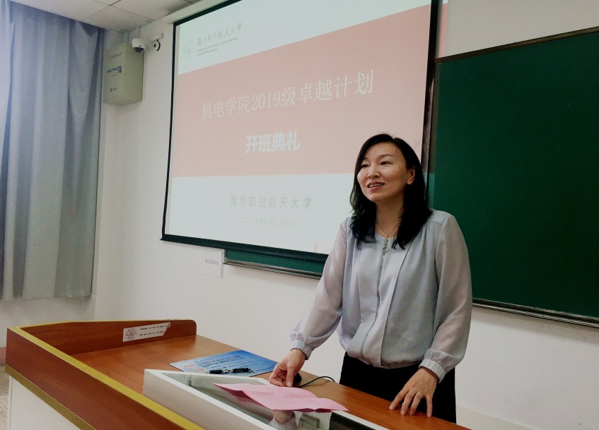 9月25日下午,色情动漫 2019级“卓越班”开班典礼在将军路校区2105举行。本次活动邀请了菲舍尔航空部件镇江有限公司工程中心副主任乔巧玲,仅一联合智造有限公司人事经理束玲,色情动漫 党委副书记徐俊珠,色情动漫 本科教学院长于敏,2019级“卓越班”导师李军,长空学院2019级辅导员张恒,色情动漫 2019级辅导员代澔丛、何雪连,本科教学秘书熊萍萍,2017级“卓越班”优秀学生代表郭嘉炜,以及2019级机械工程专业“卓越班”与飞行器制造工程专业“卓越班”的全体同学。活动由2019级“卓越班”辅导员于子洋主持。