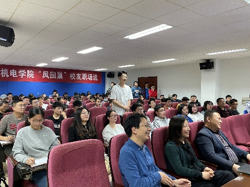 在提问环节,庄斌耐心地解答同学们提出的问题,并鼓励同学们专注自己的所学专业,培养自己“能抗能磨能耗”的坚强意志,发现问题,解决问题,为社会创造价值。
