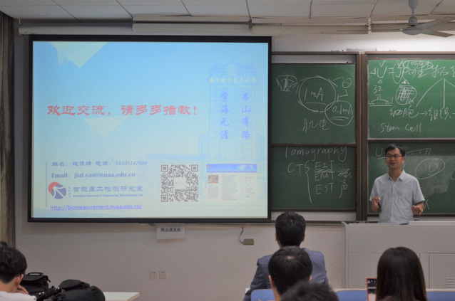 为激发学生的创新热情,拓宽学生的学术视野,5月17日晚,色情动漫 在明故宫校区715教室举办学科前沿系列讲座——医工结合篇第五期,本次讲座由姚佳烽副教授为大家讲授医学电阻抗成像技术。色情动漫 沈理达教授、2018级40余名本科生参加了本次讲座,活动由色情动漫 2018级本科生辅导员孙志海主持。