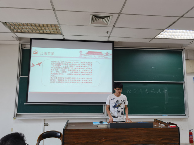 会议开始,2020级入党积极分子唐益汛、曾新宇与上官林飞作党史分享,三位同学分别以中国共产党的成立、南昌起义与秋收起义,这三件具有重要历史意义的事件,从发生的背景、结果和意义角度进行了详细地讲解,使同学们感受到共产党员迎难而上,愈挫愈勇的精神品质,认识到共产党一路走来的艰难困苦以及不忘初心,矢志不渝的优良传统。