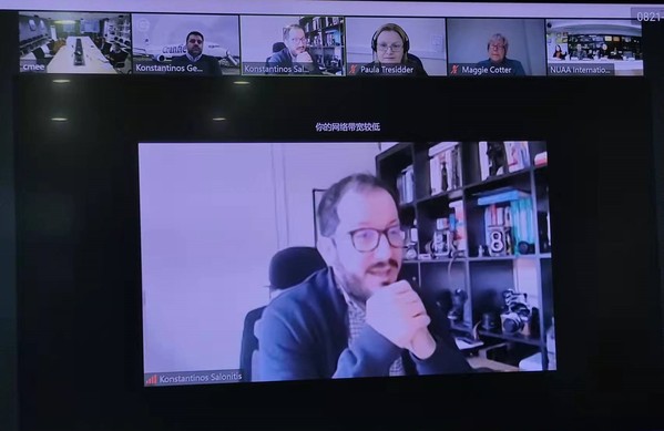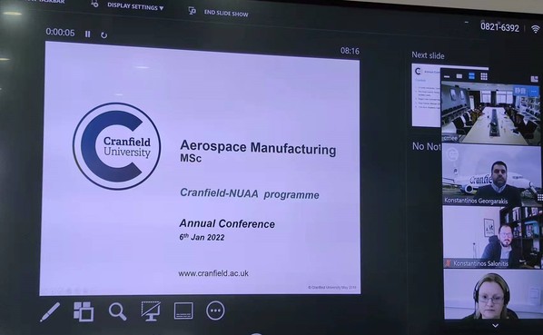 2022年1月6日下午,南京航空航天大学-英国克兰菲尔德大学机械(航空工程)专业硕士研究生教育项目年度会议顺利召开。国际合作处副处长沈敏、研究生院副院长郑祥明、色情动漫 副院长郭宇以及国际合作处、色情动漫 相关老师参加了会议,英国克兰菲尔德大学可持续制造系统中心主任Konstantinos Salonitis、项目负责人Konstantinos Georgarakis、学生和学术支持部门经理Paula Tressider以及学术英语团队成员Maggie Cotter通过视频参会。