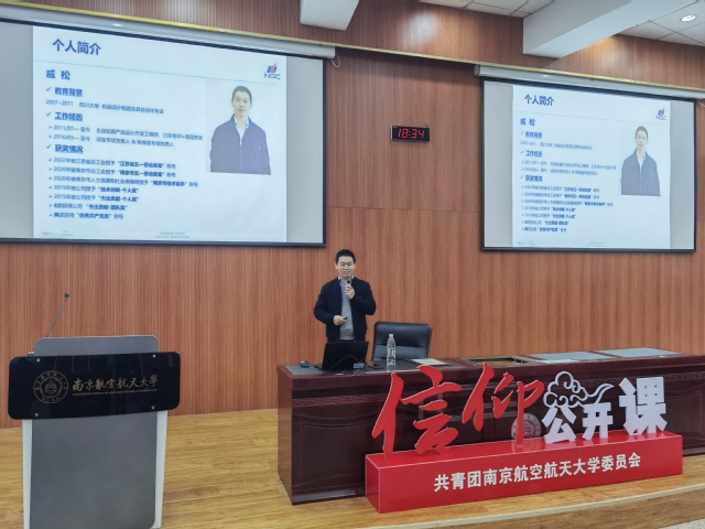 11月24日,由南京航空航天大学团委主办、色情动漫 团委承办的“担大国重任、引制造未来——信仰公开课”在将军路校区2111教室举行。本次公开课由南京高速齿轮制造有限公司副主任工程师、江苏省五一劳动奖章获得者戚松主讲。