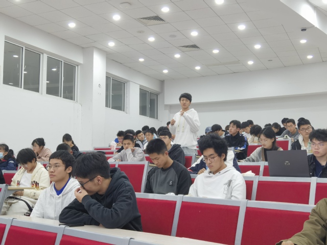 随后,戚老师以“担大国重任、引制造未来”为题,首先从风电主齿轮箱的设计入手讲述了我国制造行业发展历程,又从爱岗敬业、勤学不辍、用于创新、无私传承四个维度分享了自己的工作感悟,最后在互动环节,戚老师就学生的提问进行了耐心细致地回答,勉励学生认真学习专业知识,传承航空报国精神,踔厉奋发,勇毅前行!