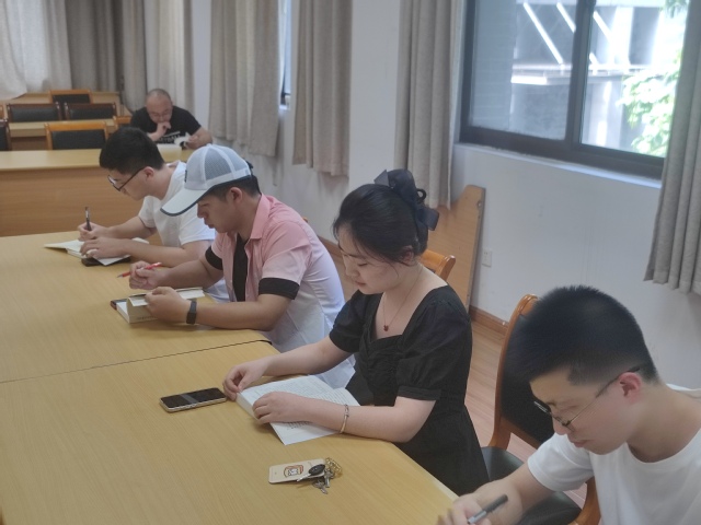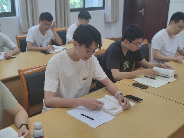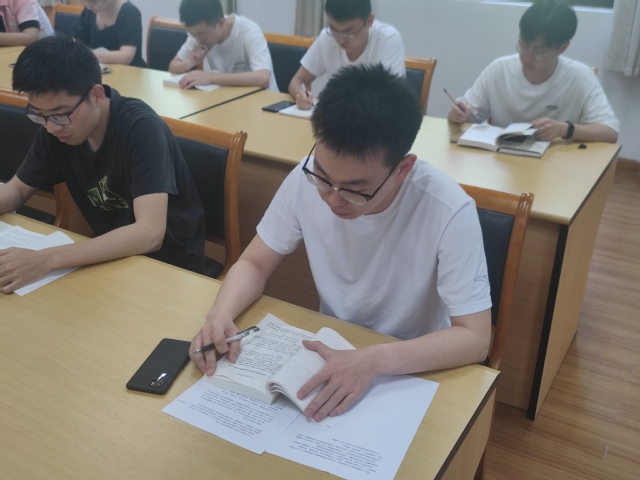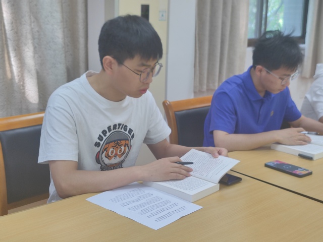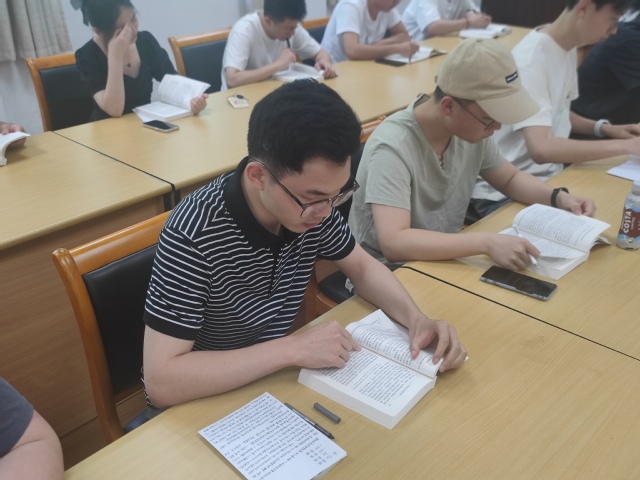 在集中学习会上,五位研究生党支部书记集中领读了《习近平新时代中国特色社会主义思想专题摘编》第一章到第五章的内容,带领大家原原本本学、逐字逐句学,通过研读深刻学习领会习近平新时代中国特色社会主义思想的科学体系、核心要义、实践要求,全面把握这一重要思想的世界观、方法论和贯穿其中的立场观点方法。