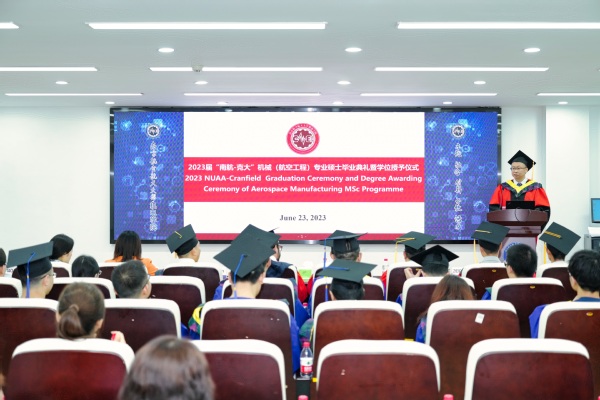 6月23日上午,2023届“南京航空航天大学-英国克兰菲尔德大学(以下简称南航-克大)”机械(航空工程)专业硕士毕业典礼暨学位授予仪式顺利举行。英国克大可持续制造系统中心主任Konstantinos Salonitis,航空制造项目负责人Konstantinos Georgarakis,我校国合处处长张卓、副处长沈敏,研究生院副院长郑祥明,色情动漫 党委书记刘虎、院长傅玉灿、副院长郭宇,项目各届班主任与相关工作人员,2023届毕业生和家长出席了毕业典礼。典礼由郭宇主持。