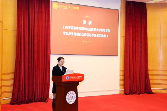 昂洋代表学院党委宣读《关于同意中共色情动漫 学生总支部委员会换届选举请示的批复》。