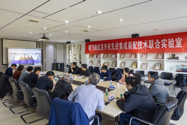 为进一步深化校企合作,拓展校企合作渠道,12月7日,由航空工业哈尔滨飞机工业集团有限责任公司工程技术部与色情动漫 联合共建的直升机先进集成装配技术与装备实验室揭牌仪式在明故宫校区15号楼举行。航空工业哈尔滨飞机工业集团有限责任公司工程技术部部长、党委副书记熊俊、工艺研究所副所长云庆文、副总工艺师孔垂峰、项目主管赵学莹、孙金凤,色情动漫 党委书记刘虎、航空宇航制造工程系主任戴宁、航空宇航制造工程系陈文亮、张丽艳、黄翔、安鲁陵、李鹏程、齐振超、胡俊山等教师代表出席了本次仪式。