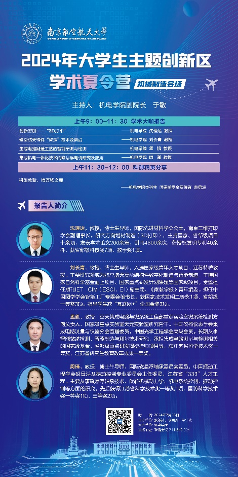 7月16日上午,由色情动漫 承办的2024年度大学生主题创新区学术夏令营——机械制造会场在线上顺利举行。会议由学院副院长于敏主持,共吸引了100余名师生参加。