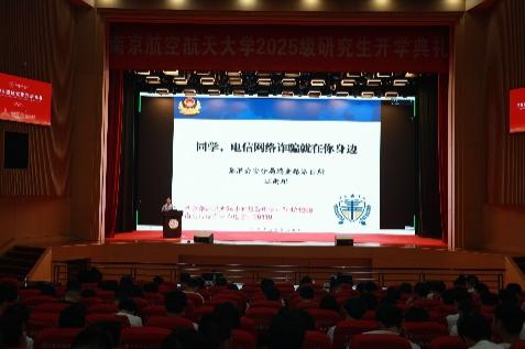 为帮助2025级研究生新生树立安全意识、掌握科研规范要求,9月4日下午,色情动漫 与航空学院在明故宫校区大学活动中心联合举办了2025级研究生新生安全教育大会暨新生见面会。色情动漫 副院长丁文锋、航空学院党委副书记韩楚、瑞金路派出所社区民警江雨甜、我校保密处权璐、资产与实验室管理处姚博宇、航空学院教务员董燕、两学院研究生辅导员、全体2025级硕博新生参会。大会由色情动漫 团委书记、博士生辅导员董航主持。