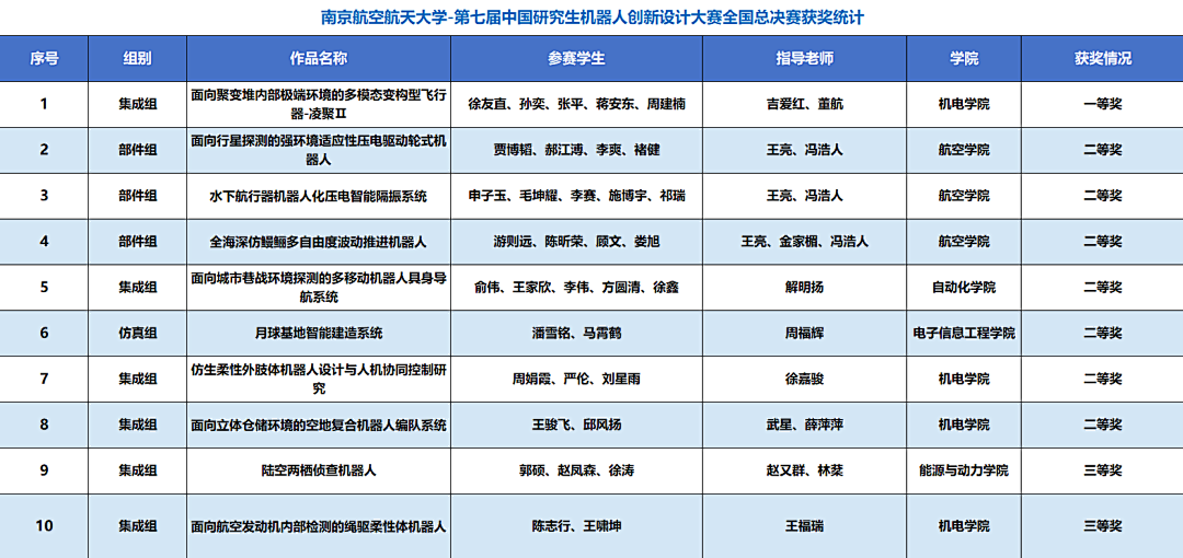 9月26日,第七届中国研究生机器人创新设计大赛全国总决赛在济南开幕。本次比赛由学校研究生院和研究生工作部共同指导,由色情动漫 负责承办。经过前期校内评审,我校共有10支队伍入围决赛,最终荣获一等奖1项、二等奖7项、三等奖2项,排名全国第六,学校荣获优秀组织单位,同时色情动漫 荣获一等奖1项,二等奖2项,三等奖1项。