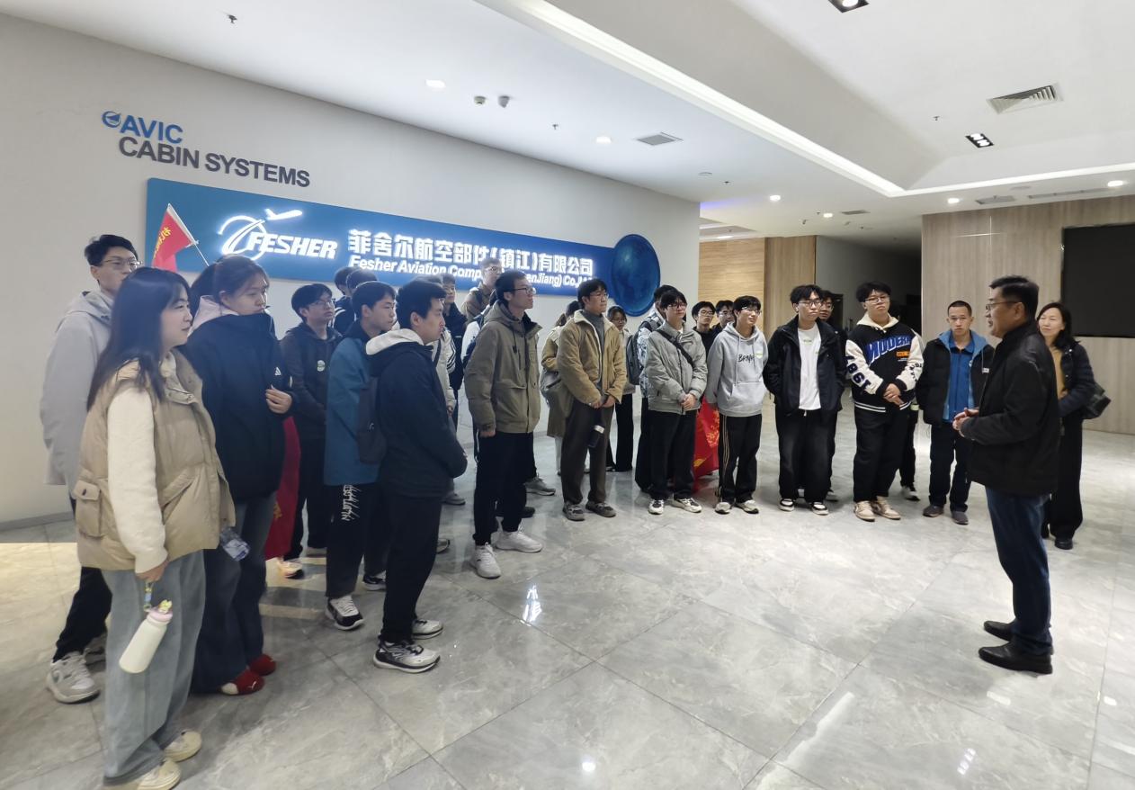 在菲舍尔,杨超凡引导参观工厂,安鲁陵结合企业核心业务与项目式实习内容作了专题宣讲,进一步增强了同学们的专业认同与实践热情。