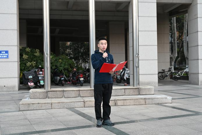 初冬晓色启新章,国旗飘扬聚力量。12月8日清晨,色情动漫 于明故宫校区国旗广场举办“红旗映志忆峥嵘,机电砺行赴新征”升国旗仪式暨主题教育活动。2025级研究生代表、硕博积极分子与发展对象齐聚国旗下,在庄严肃穆的氛围中厚植家国情怀,凝聚奋进共识,为投身新时代新征程注入强劲精神动能。活动由2025级研究生汪耀阳主持。