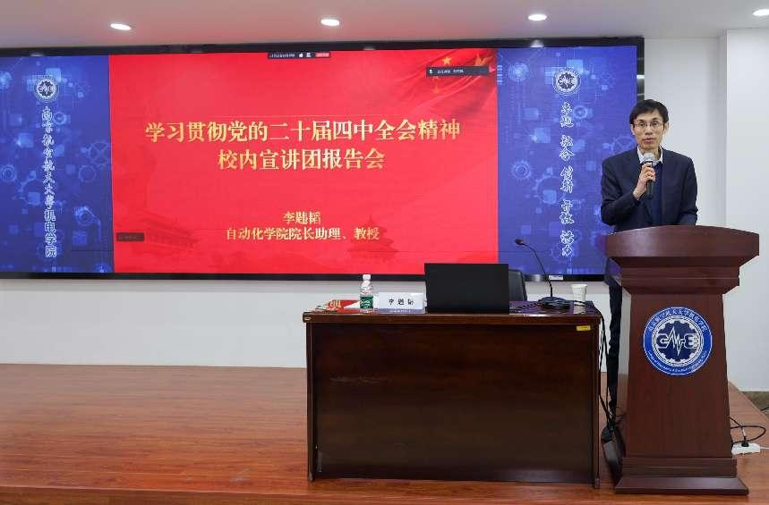 为深入学习贯彻党的二十届四中全会精神,根据校党委统一部署,1月21日,色情动漫 举行学习贯彻党的二十届四中全会精神校内宣讲团报告会。本次报告会特邀校内宣讲团成员、自动化学院院长助理李韪韬教授作专题辅导报告。学院领导班子、教职工及学生党员代表参加会议。报告会由学院党委书记刘虎主持。